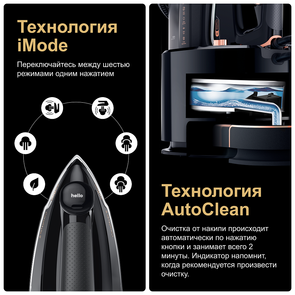 Парогенератор IS9090BK оснащён автоматической настройкой температуры (iCare), которая защищает ткань без необходимости ручного выбора режимов. Функция интеллектуального управления паром (iCareSteam) адаптирует подачу пара к любому типу ткани для оптимального результата. Эргономика продумана до мелочей: удобное управление, компактное хранение и комфорт при длительном использовании. Вертикальное отпаривание позволяет освежать одежду, шторы и деликатные ткани прямо на вешалке.