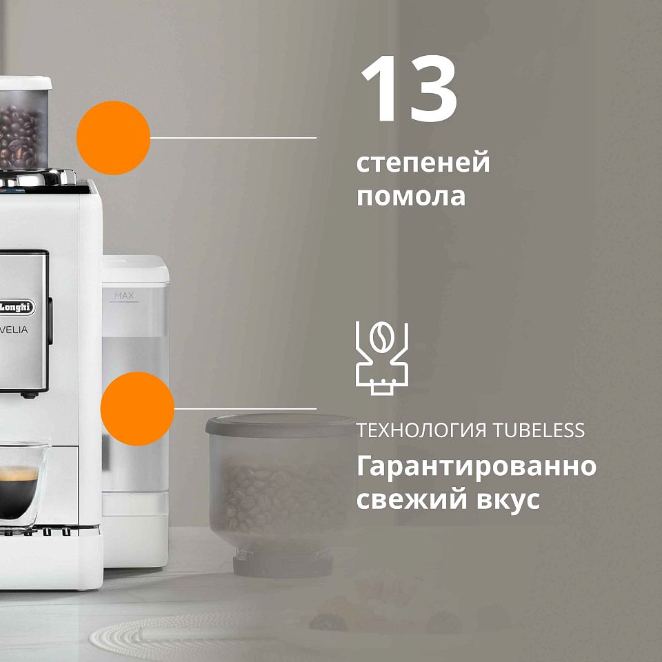Автоматическая кофемашина De’Longhi EXAM440.35.W — это воплощение технологического прогресса и итальянского стиля, созданное для тех, кто стремится исследовать многогранность кофейного мира и ценит бескомпромиссное качество в каждой детали.