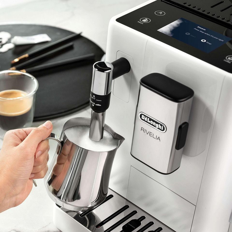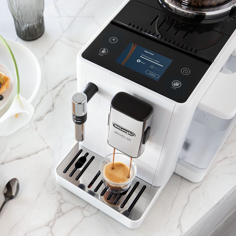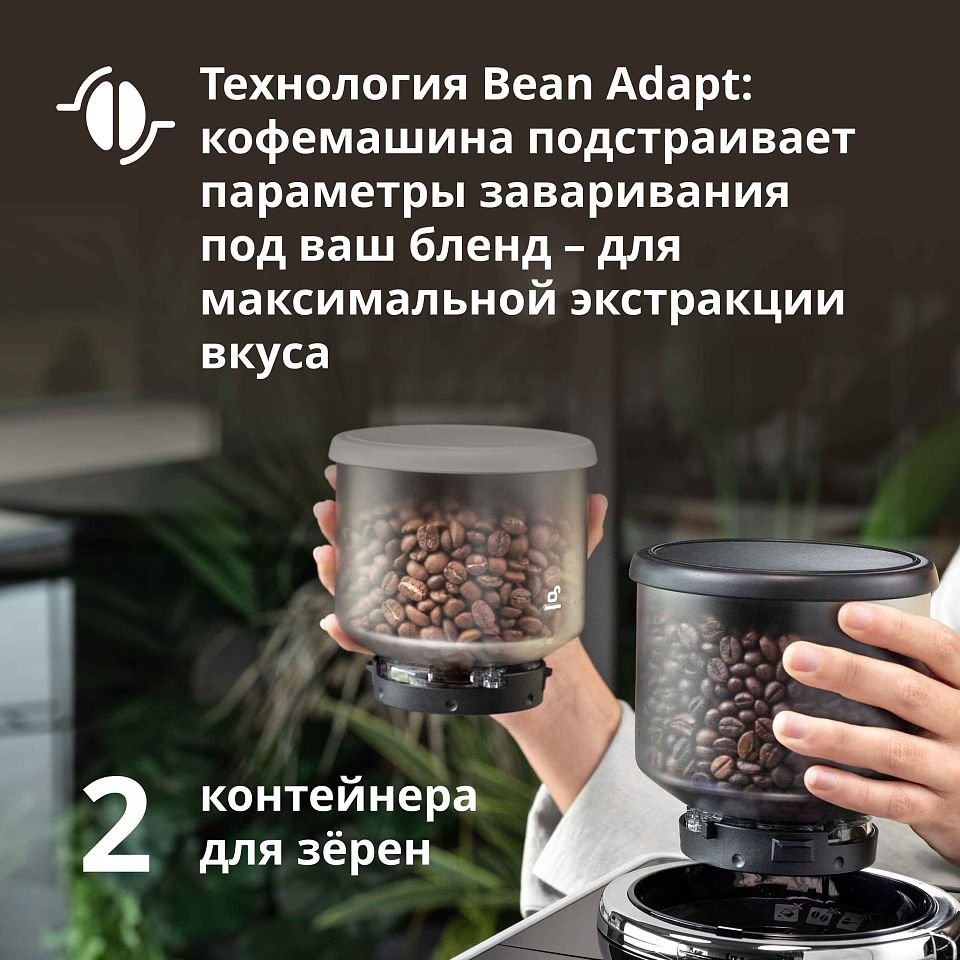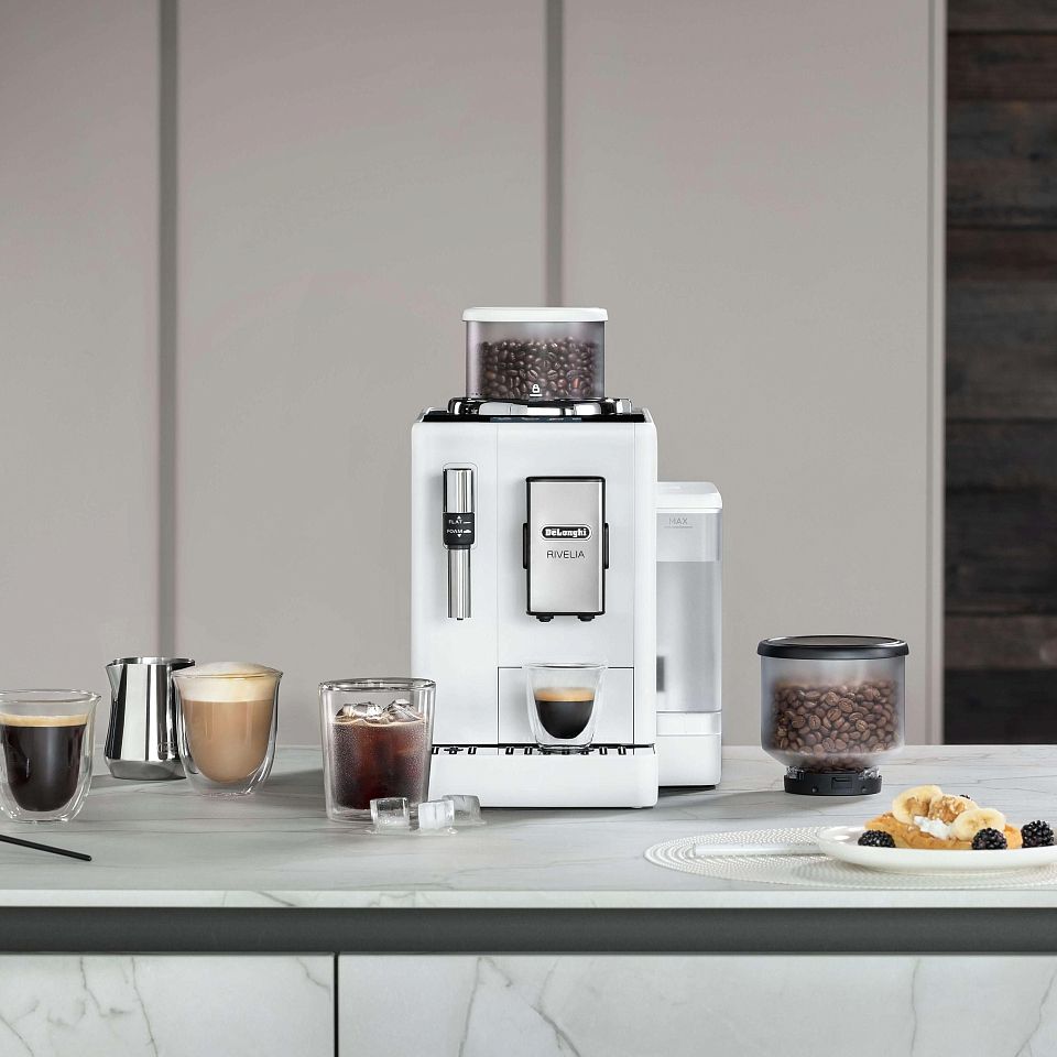 Главное преимущество модели — инновационная система Bean Switch с двумя сменными контейнерами по 250 грамм, позволяющая мгновенно переключаться между разными сортами зерен. В сочетании с технологией Bean Adapt, которая в линейке Rivelia впервые встроена непосредственно в интерфейс дисплея, машина автоматически корректирует параметры экстракции для безупречного раскрытия вкусового профиля выбранного кофе. Встроенная кофемолка (13 степеней помола) и помпа с давлением 19 бар гарантируют профессиональную точность и насыщенность каждой порции кофе.